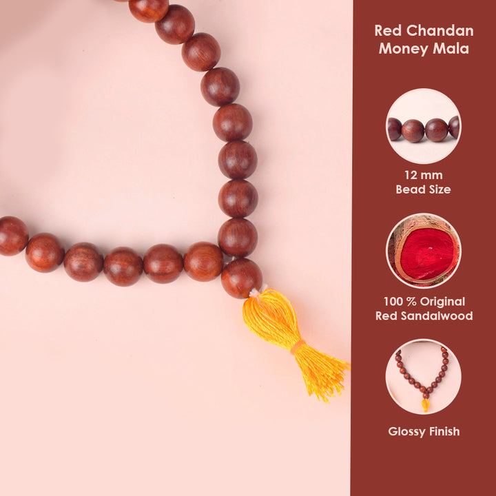 Shop 27 Bead Red Chandan Money Mala for Wealth & Luck | Satvikworld.com