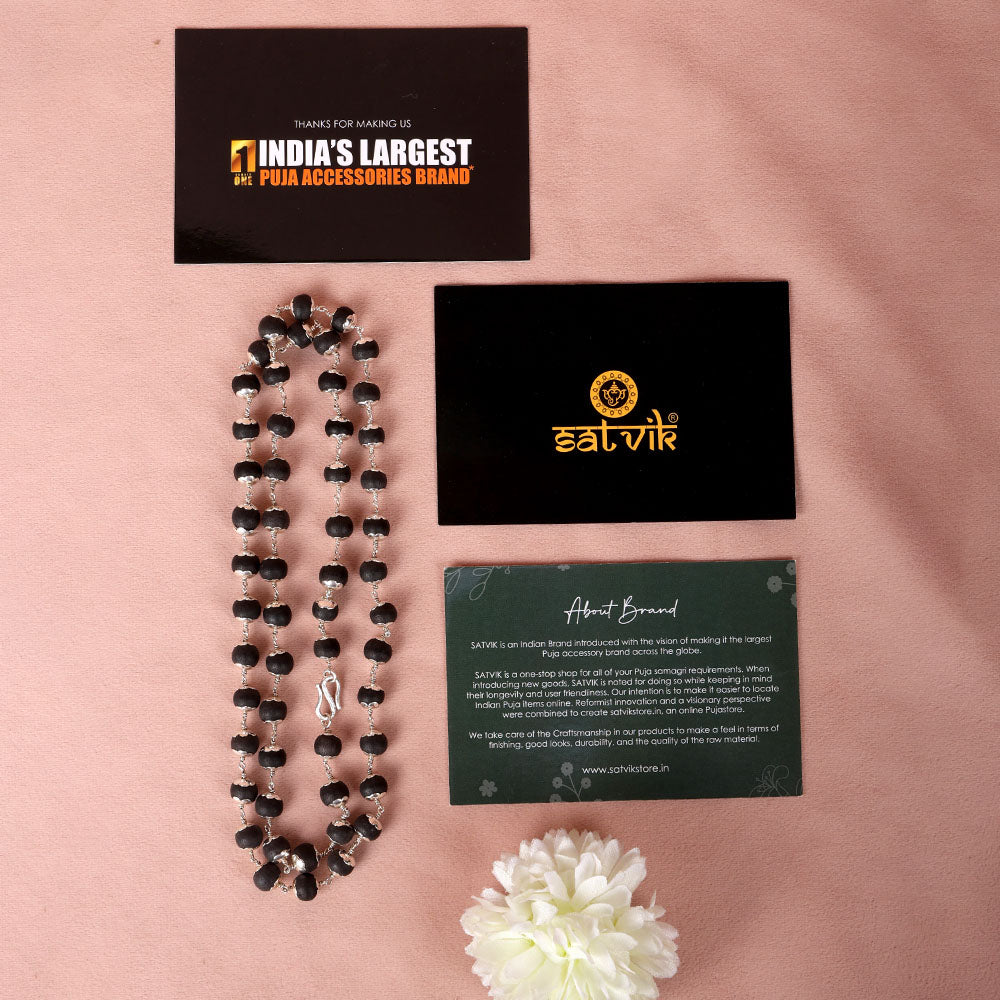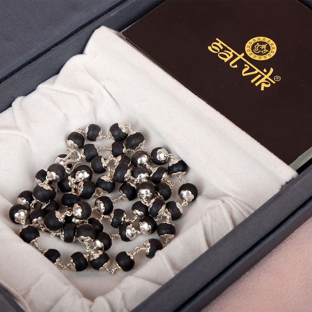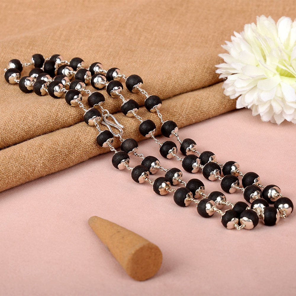 Buy Online | Certified Karungali Mala with 925 Silver Caps | Satvikworld.com