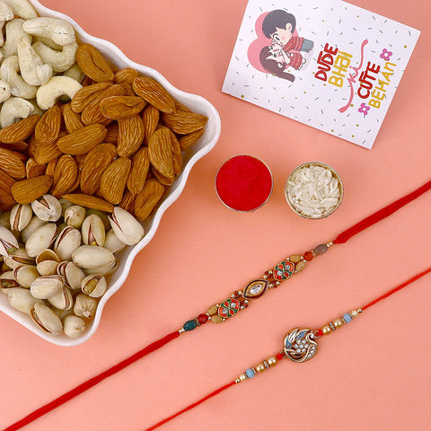 To add sweetness to your celebrations, opt for Rakhi with sweets. These delightful combos not only symbolize the love between siblings but also satisfy the taste buds. Explore the diverse range of Rakhi gift boxes that come with delectable assortments of traditional Indian sweets, chocolates, and dry fruits, making them perfect for gifting.