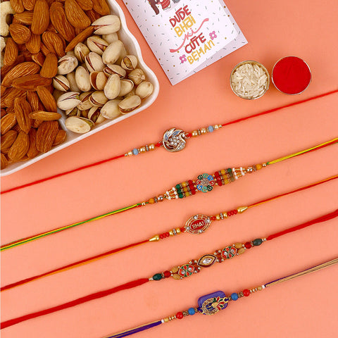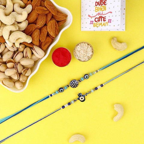 Are you concerned about the evil eye? Look for Rakhi Bracelets with protective evil eye charms, believed to ward off negative energies and bring good luck to the wearer. These stylish and meaningful Rakhi options are sure to be cherished by your brother.