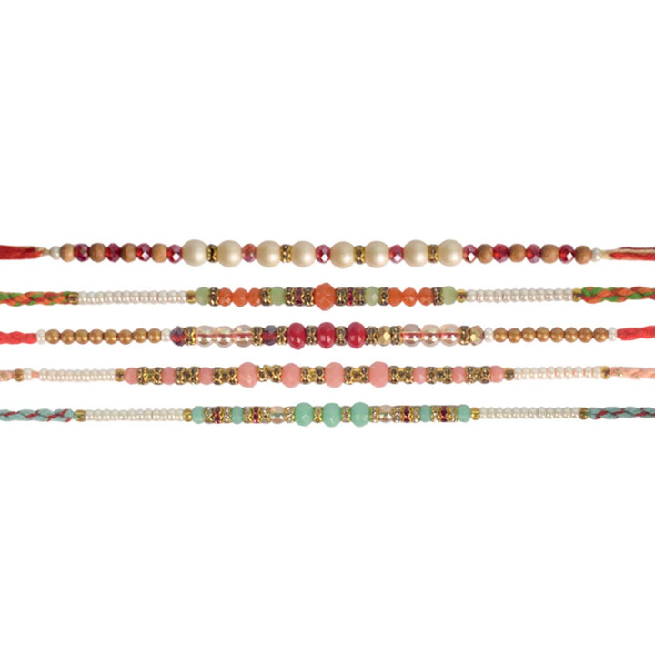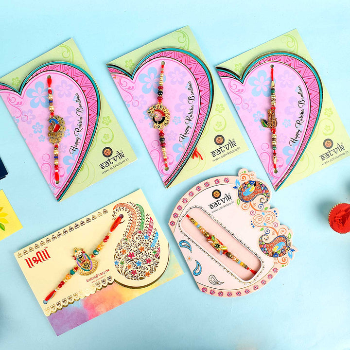 Set of 5 Rakhi | Designer Rakhi Combo | Rakhi Gift Set | Rakhi with Roli Chawal | Buy Rakhi Online | Raksha Bandhan Rakhi Combo | Traditional Rakhi Set | Rakhi for Brother | Rakhi with Blessings Stickers | Family Rakhi Set
