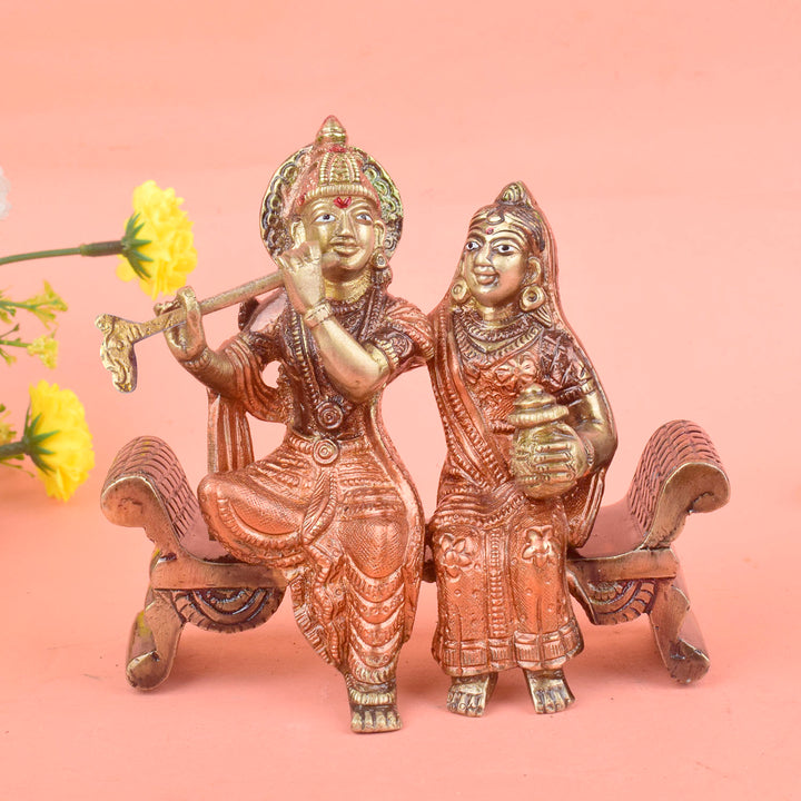 4.7 Inch Graceful Sitting Radha Krishna on Bench – A Spiritual Masterpiece