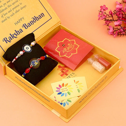 Are you concerned about the evil eye? Look for Rakhi Bracelets with protective evil eye charms, believed to ward off negative energies and bring good luck to the wearer. These stylish and meaningful Rakhi options are sure to be cherished by your brother.