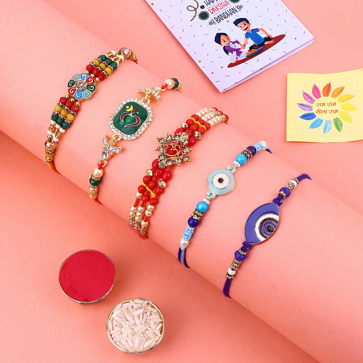 Satvik 5 Pc Designer Rakhi Set for Complete Family