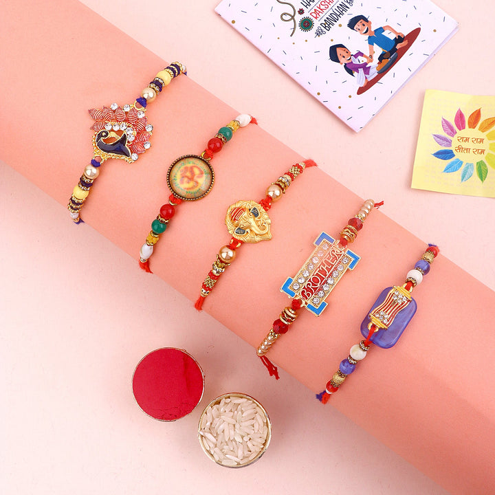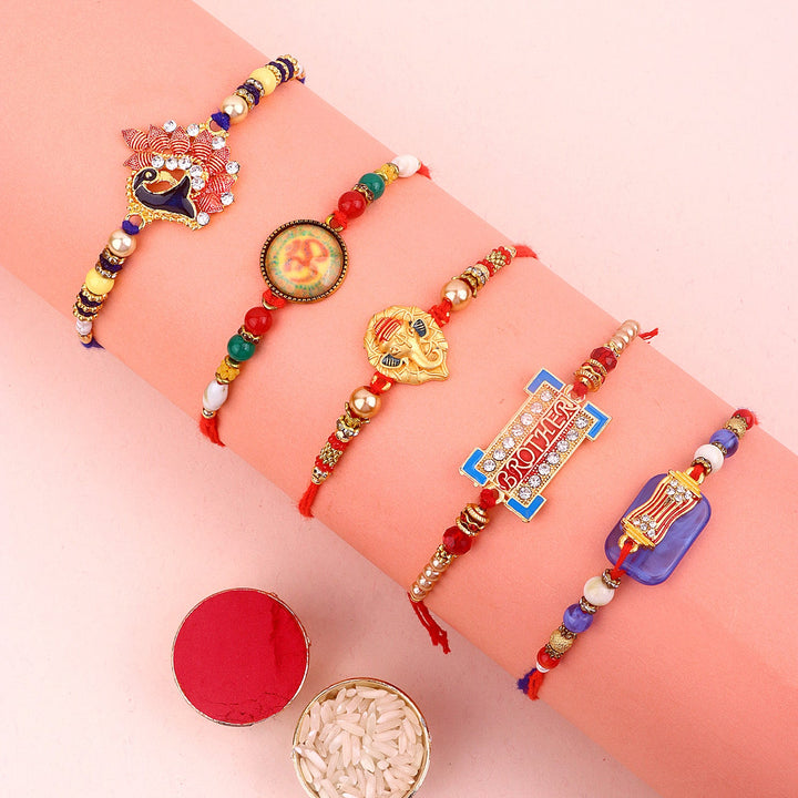 Satvik Handcrafted Kundan & Stone Rakhi Set of 5