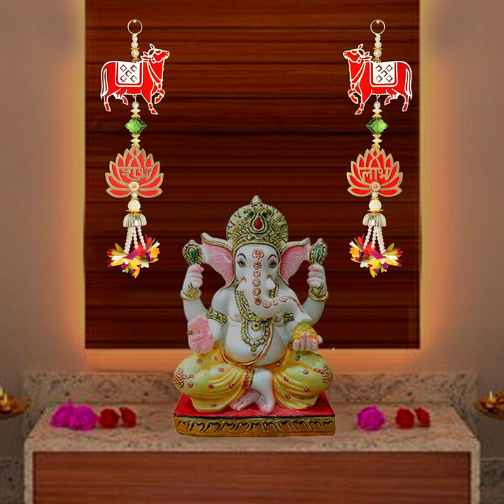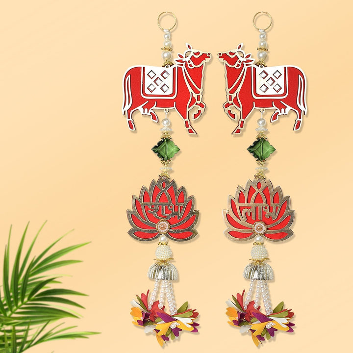 Cow with Lotus Shubh Labh Side Door Wall Hangings – Satvikworld.com