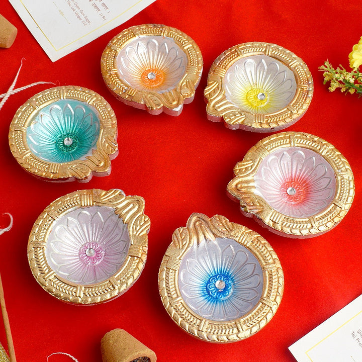 Crafted Light Stunning Clay Diyas for Diwali Celebrations Set of 6