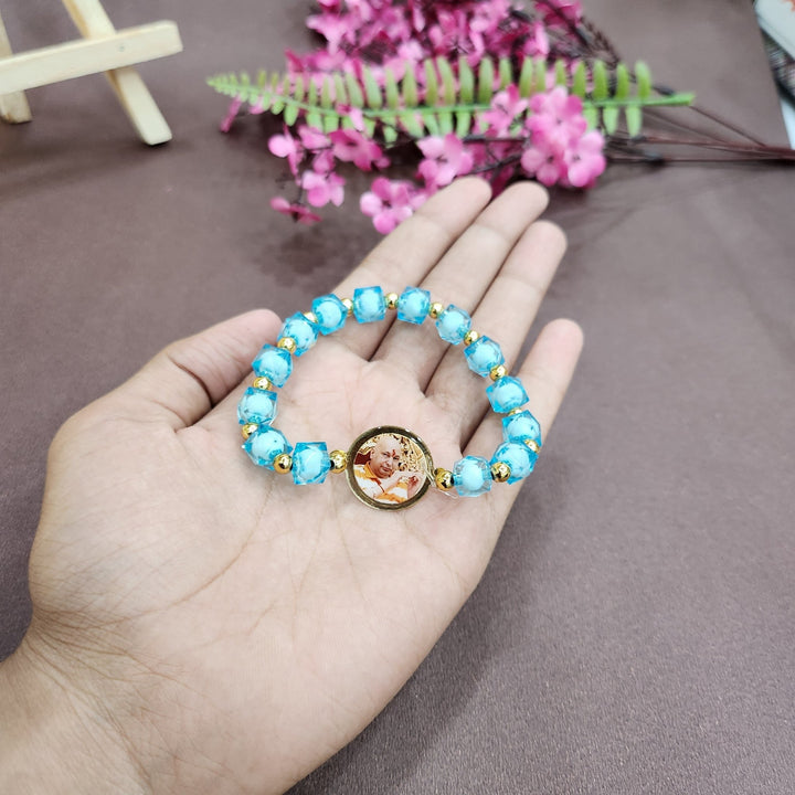 • Item Name: Crystal Pearl Bracelet with Jai Guruji Swaroop Handmade Bracelets for Men and Women.