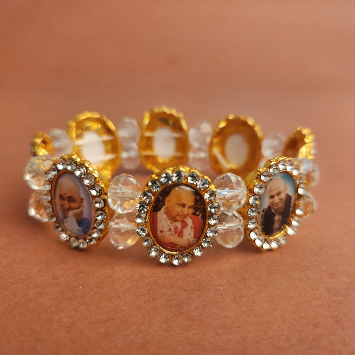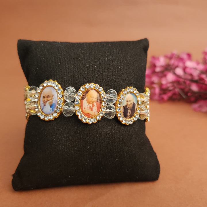 Crystal Round Pearl Bracelet with Jai Guruji Swaroop Handmade Bracelet – Satvikworld.com