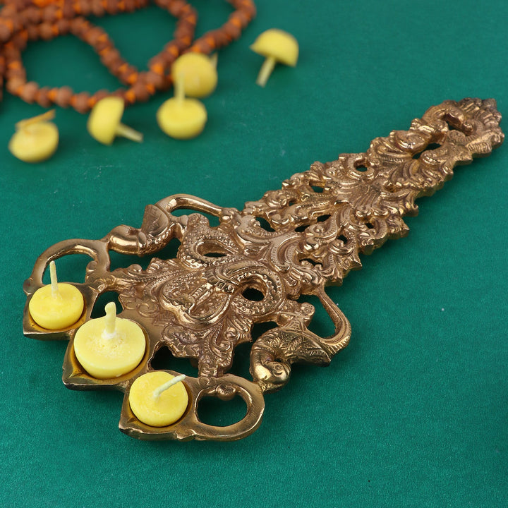 • Item NameDesigner Brass Trimukh Kapoor Aarti Spoon