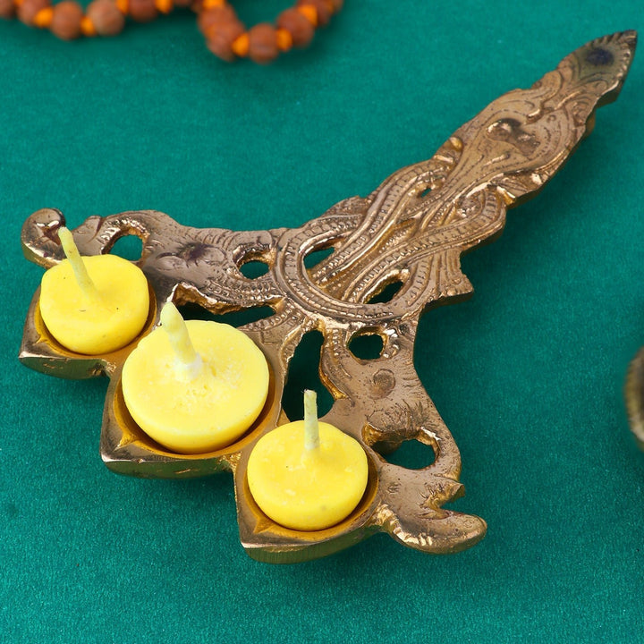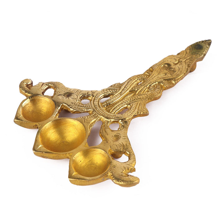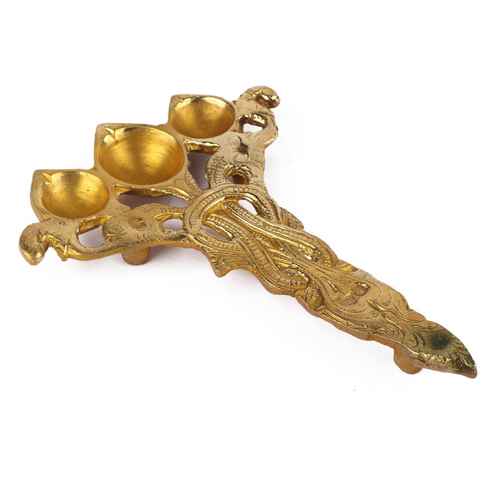 • Item Name: Designer Brass Trimukh Kapoor Aarti Spoon Medium