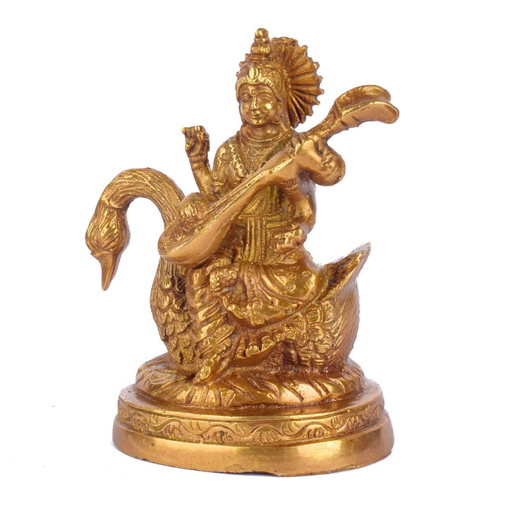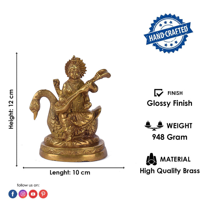• Material: The Saraswati Mata Murti is made from High-Quality Brass Material