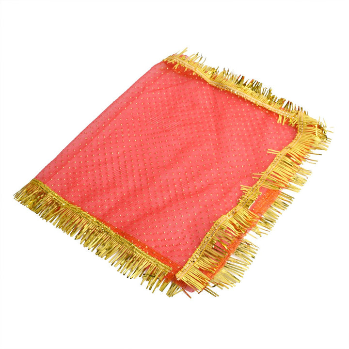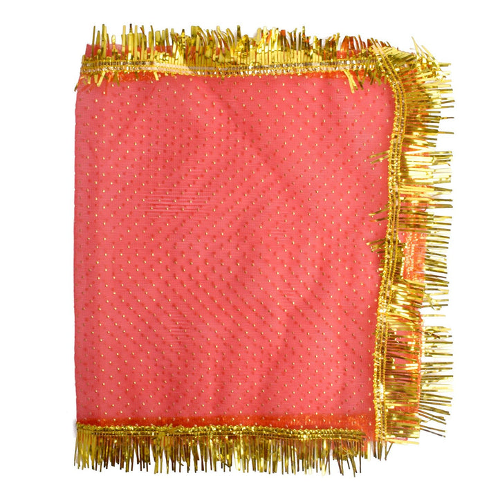Dotted Mata Chunni | Red Puja Chunni | Traditional Mata Chunni | Devotional Textile | Puja Decoration Cloth | Indian Religious Accessories | Spiritual Puja Essentials | Mata Worship Cloth | Festive Puja Decoration | Sacred Puja Fabric