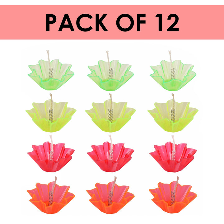 • Material: Plastic with Wax Coated Wicks. These diyas are Transparent which gives a beautiful shadow when lighted.