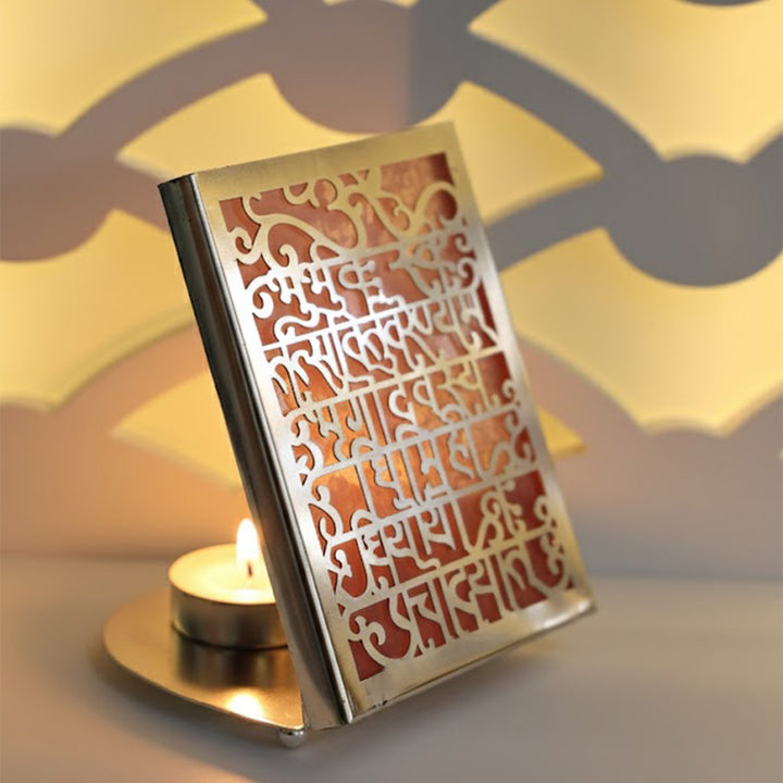 Gayatri Mantra Cut Work Tealight Silver