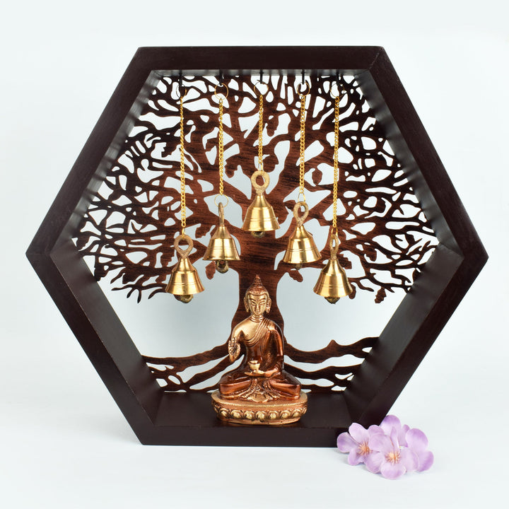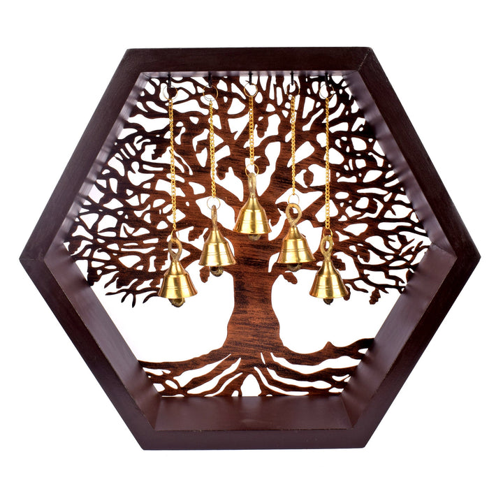 • Color: Color: Brown, Made of MDF material with a Wooden Pattern Design and Brass Bells.