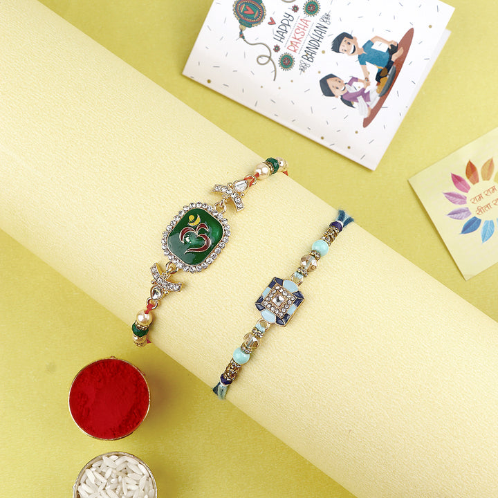 Set of 2 Rakhi | Rakhi for Brothers | Traditional Rakhi Combo | Rakhi Set with Roli Chawal | Buy Rakhi Online | Designer Rakhi for Brother | Rakhi with Stickers | Raksha Bandhan Rakhi Set | Premium Rakhi Threads | Rakhi for Siblings