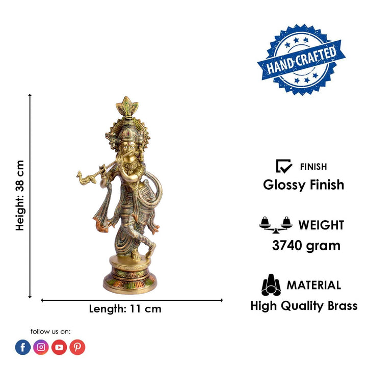 • Item Name: 15 Inch Religious Lord Large Krishna God Brass Statue