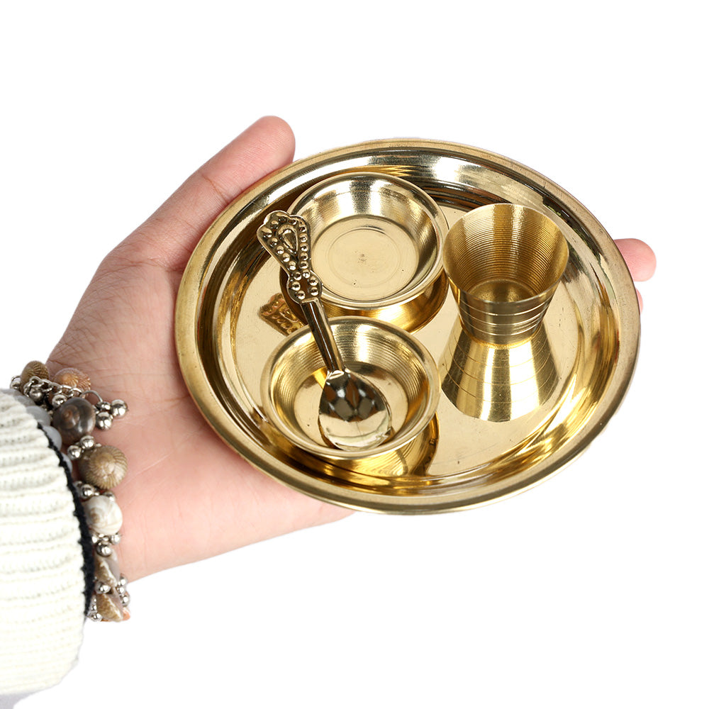 • Material: The Brass Puja Thali is made from High-Quality Brass Material