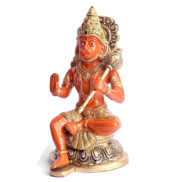 Buy 7.9 Inch Shree Kesari Hanuman Sitting Brass Idol | Satvikworld.com