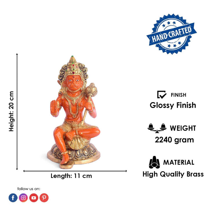 • Item Name: 7.9 Inch Shree Kesari Hanuman Sitting Brass Idol