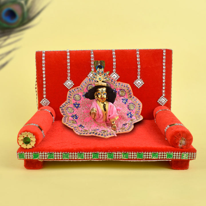 Buy Online | Laddu Gopal Velvet Singhasan Pink Red | satvikworld.com – Satvikworld.com