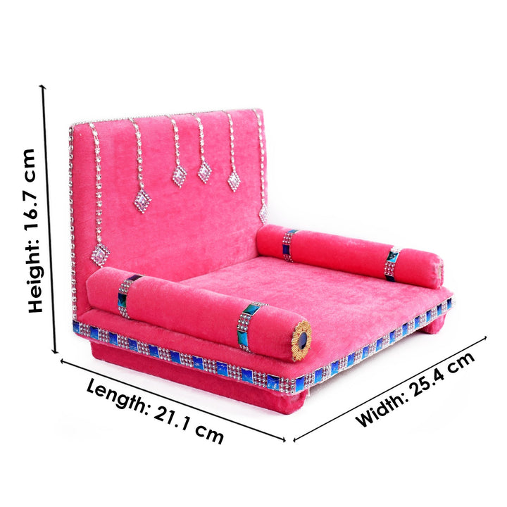 laddu gopal velvet singhasan | red velvet krishna singhasan | pink deity pooja seat | kanha ji throne pink red | pooja furniture for laddu gopal | bal gopal singhasan velvet | janmashtami mandir decoration | divine pooja room essentials | handmade velvet singhasan