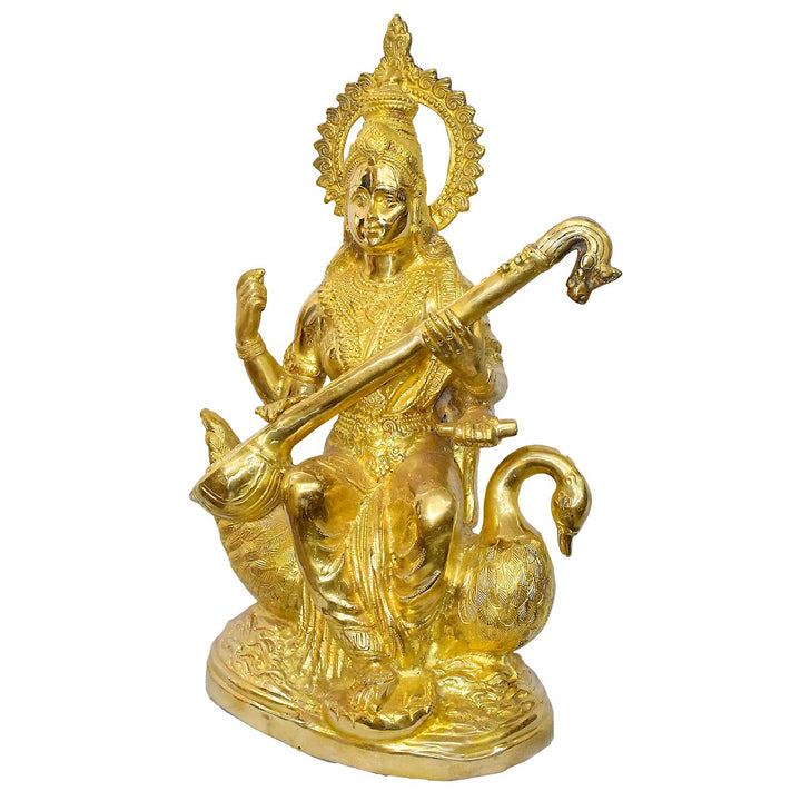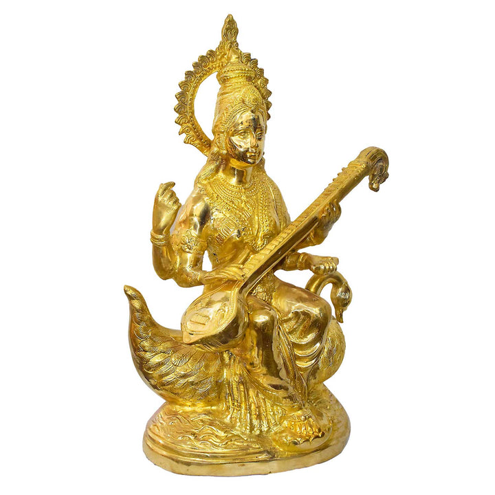 Shop Large Brass Saraswati Mata | Buy Online | Satvikworld.com