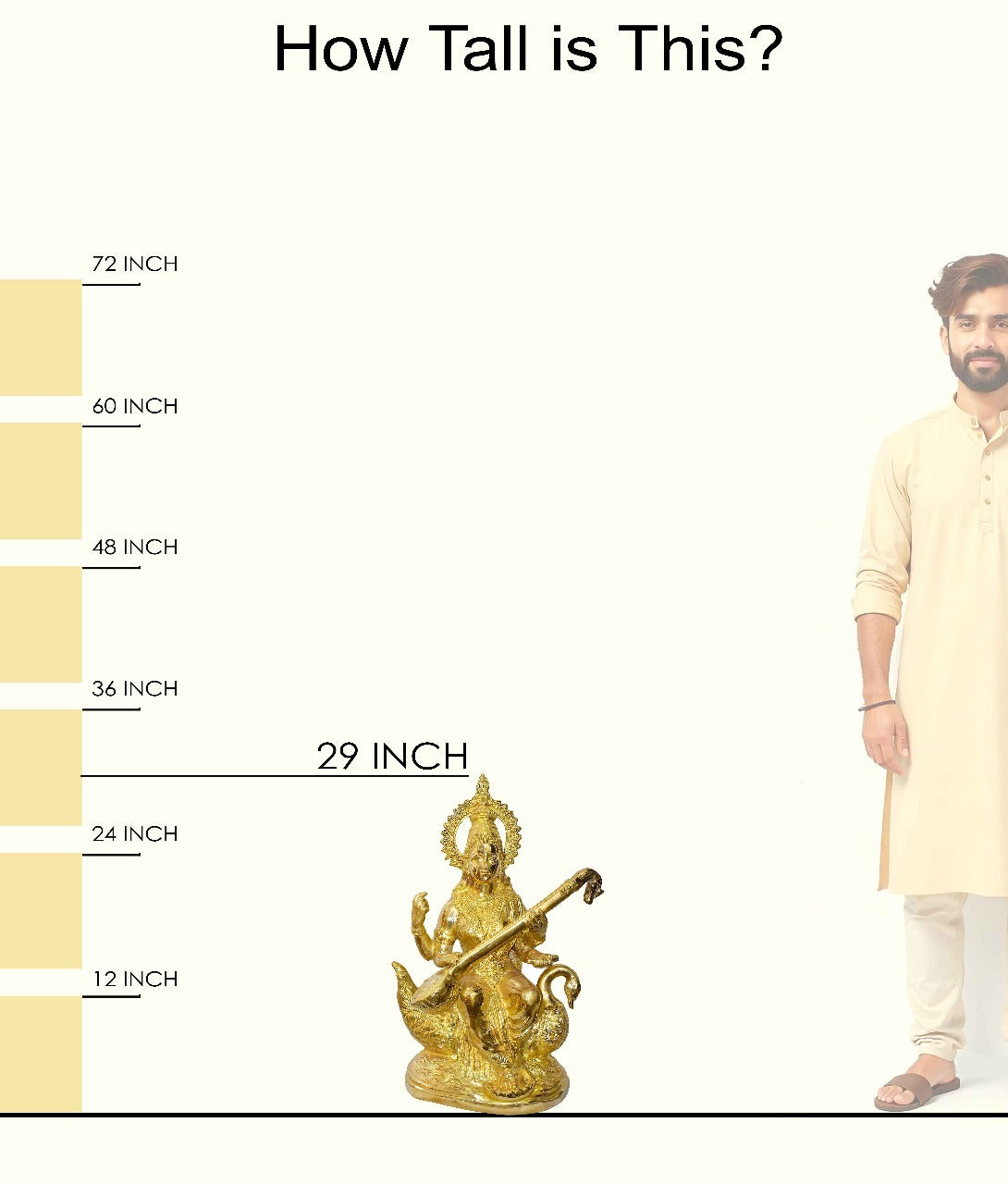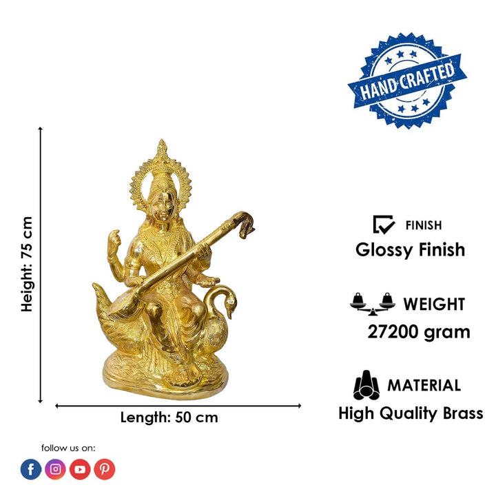 • Material: The Goddess Saraswati is made from Pure Brass Virgin Material.