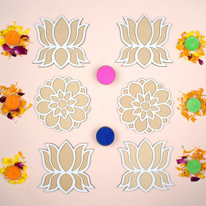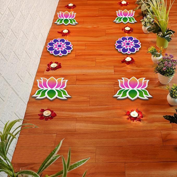 • Durable Materials: Crafted from wooden tools, the mat is built to last, ensuring you can use it for many Diwalis to come. Endless Design Possibilities: Explore an array of designs, from traditional kolam patterns to modern floral and border designs, with our versatile stencils.