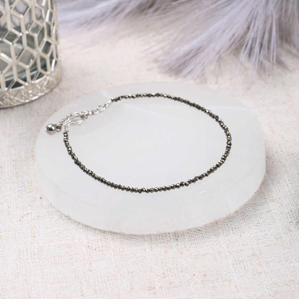 • Design: Beaded Anklet with Natural Pyrite Gemstones