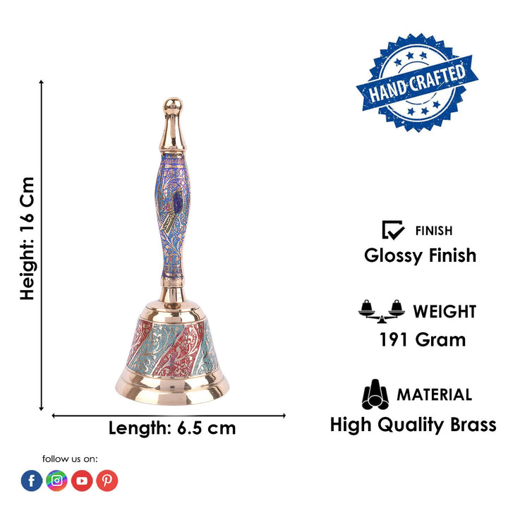Buy Handcrafted Brass Puja Bell (Skyblue & Red) | Satvikworld.com