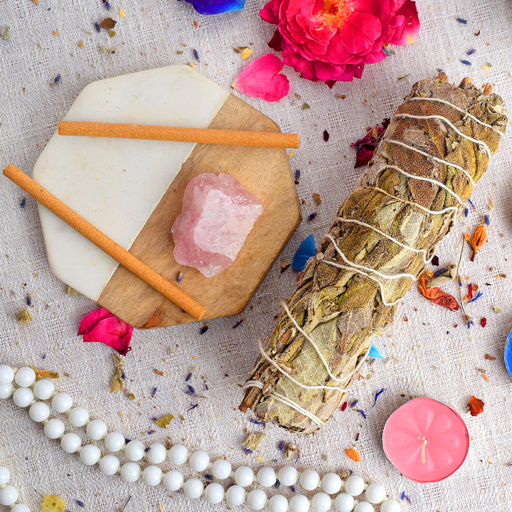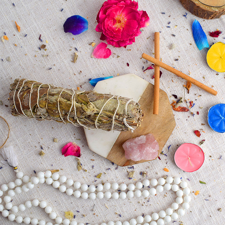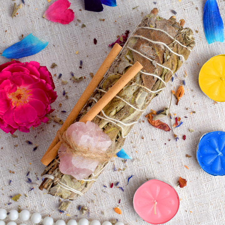 MAXICAN INCENSE SAGE WITH ROSE QUARTZ CRYSTAL HEALING SMUDGE – Satvikworld.com