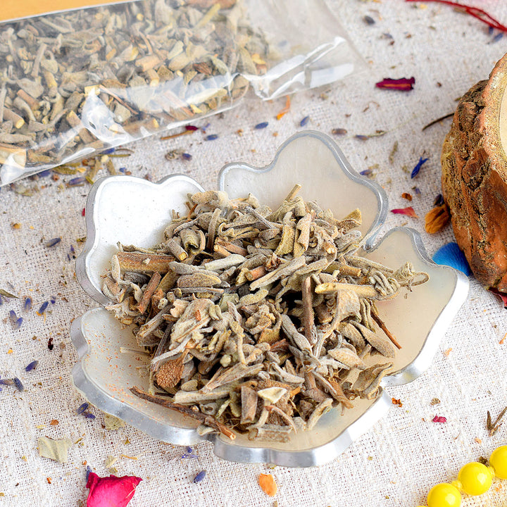 • About Product: We at Satvikstore.in Discover the natural power of our Sage Leaves Pack. Carefully curated, this pack contains high-quality sage leaves known for their cleansing and purifying properties. Each leaf is hand-selected to ensure the finest quality. Perfect for energy clearing, rituals, or creating a serene atmosphere. Embrace the ancient wisdom of sage and experience its transformative effects. Order your Sage Leaves Pack today from our online store and invite positive energy into your space. Elevate your well-being with the pure essence of sage. Shop now and unlock the magic of Sage Leaves.