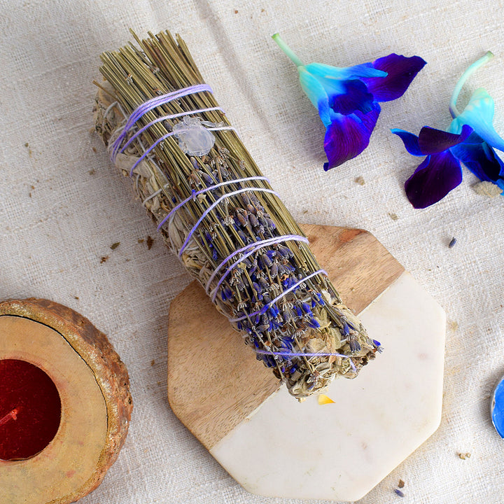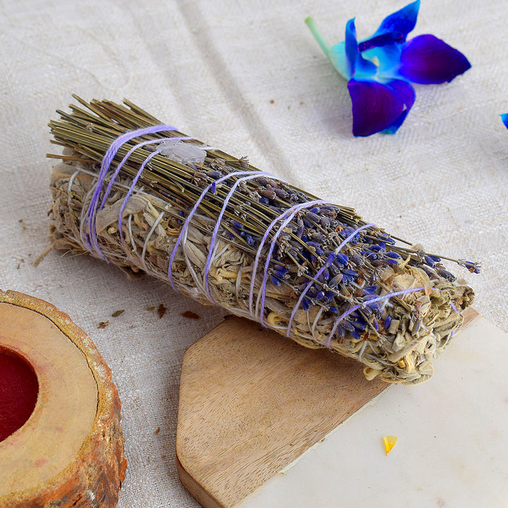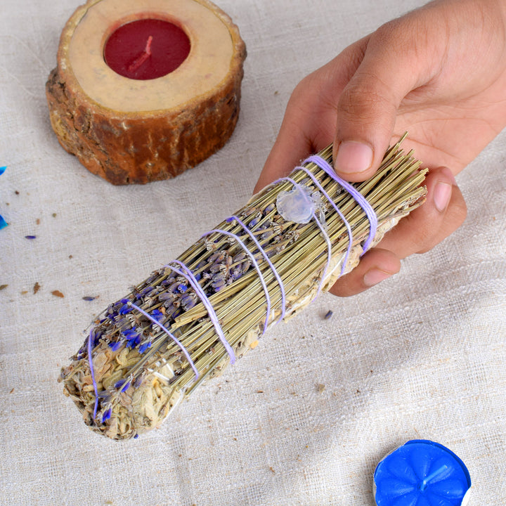 WHITE SAGE WITH LAVENDERS & GREEN AVENTURINE CRYSTAL HEALING SMUDGES – Satvikworld.com