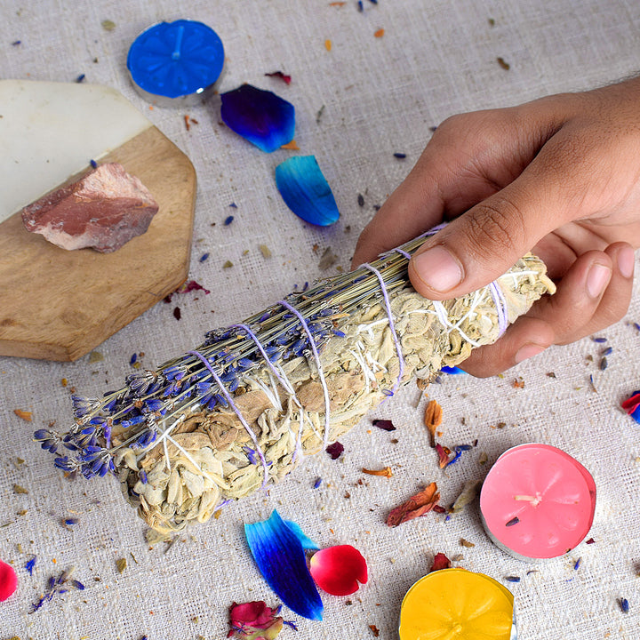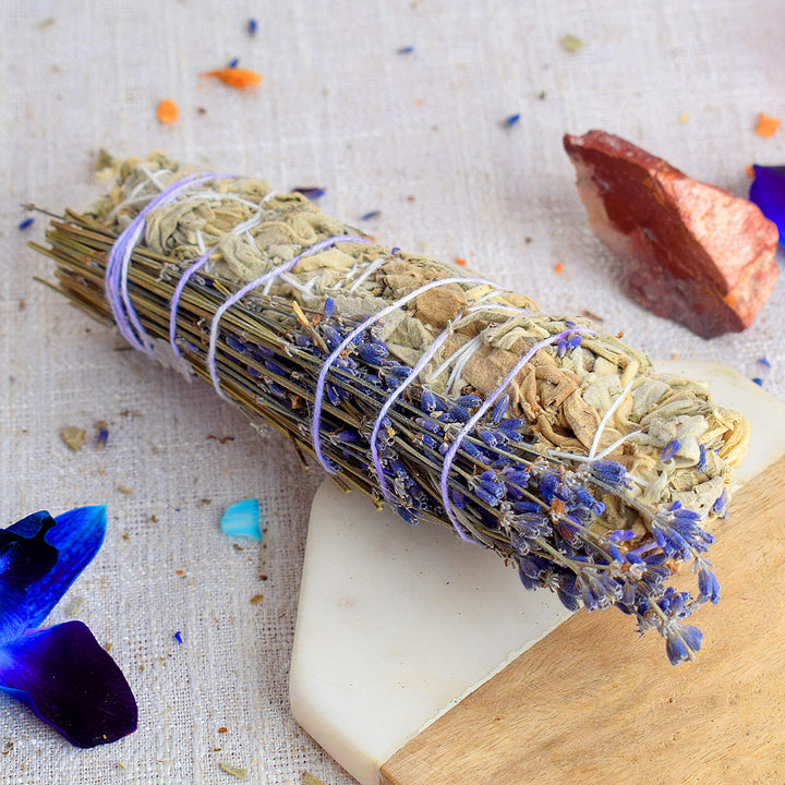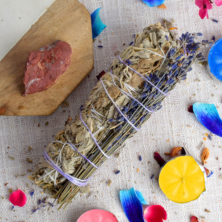 WHITE SAGE WITH LAVENDERS & RED JASPER CRYSTAL HEALING SMUDGES – Satvikworld.com