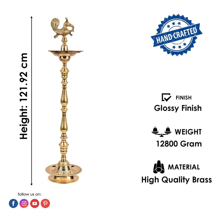 54 Inch Brass Kerala Peacock Samai Deepam Inauguration Lamp | Grand Kerala Peacock Diya | Brass Inauguration Lamp | Handcrafted Peacock Deepam | Traditional Brass Oil Lamp | Religious Brass Lamp | Indian Pooja Lamp | Peacock Design Brass Diya | Temple Samai Lamp | Divine Brass Lamp for Festivals | Pure Brass Pooja Lamp