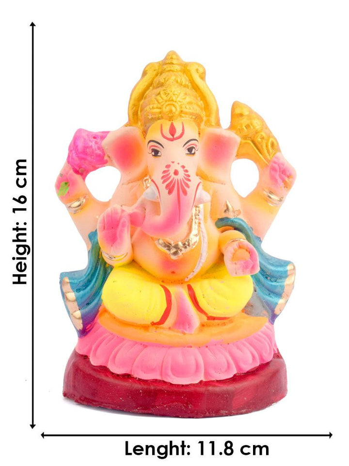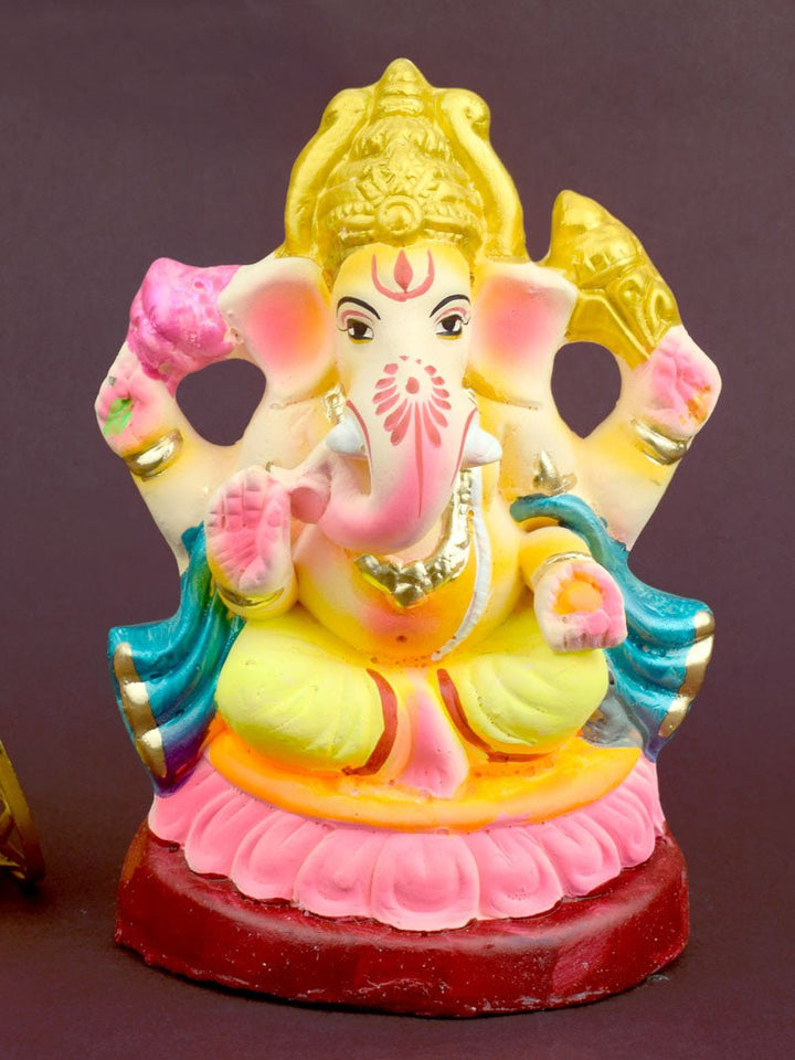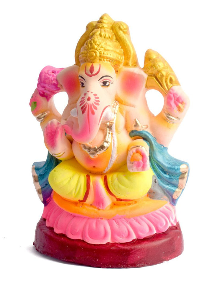 Eco Friendly Ganesha statues are made of 100% biodegradable and eco-friendly material by using Shadu Mati Clay Mitti, which dissolves easily in water. The colours used are also natural, and they decompose and dissolve in water easily. Although they have been made all across India, West Bengal and Maharashtra often employ skilled artisans to make them.