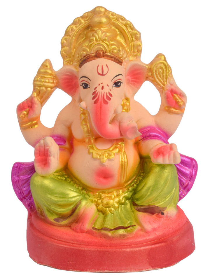 Eco Friendly Ganesha statues are made of 100% biodegradable and eco-friendly material by using Shadu Mati Clay Mitti, which dissolves easily in water. The colours used are also natural, and they decompose and dissolve in water easily. Although they have been made all across India, West Bengal and Maharashtra often employ skilled artisans to make them.