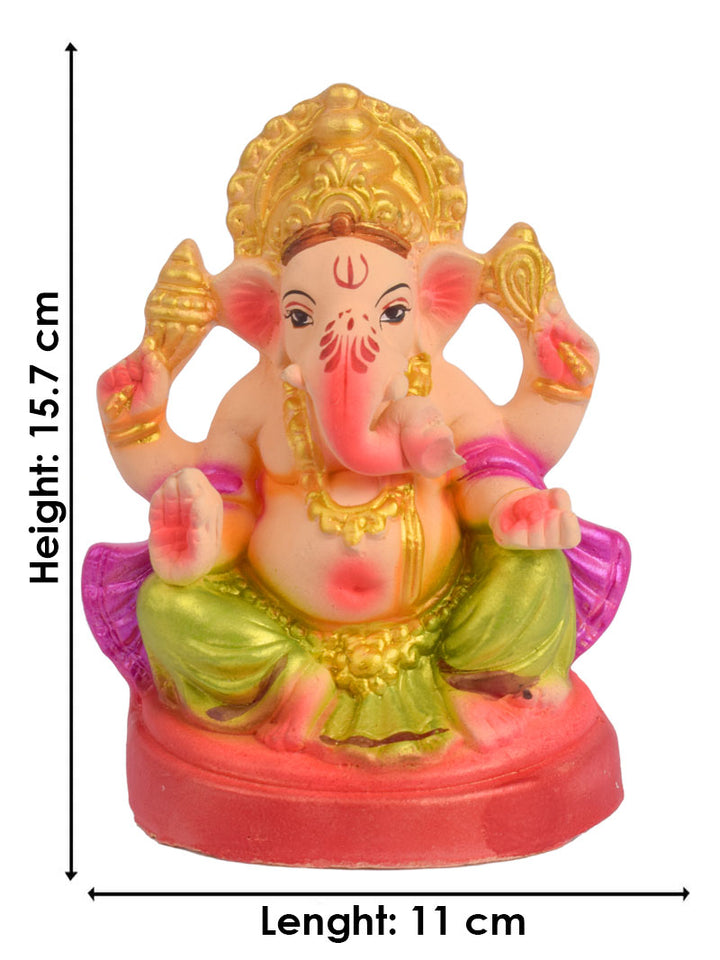• Material: Our  Eco-Friendly Ganesha Idol is made of 100% Bio-degradable, eco-friendly mud/Mitti. Sadhu Matti Clay.