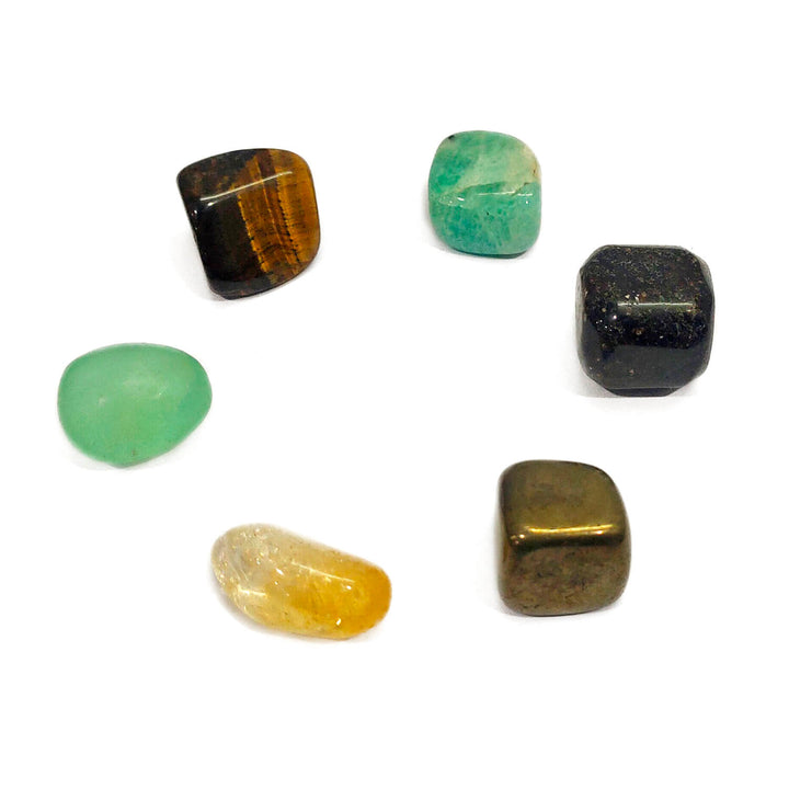 • In Kit: Six Wealth Stone (Citrine, Green Aventurine, Pyrite, Ruby, Amazonite, Tiger's Eye.