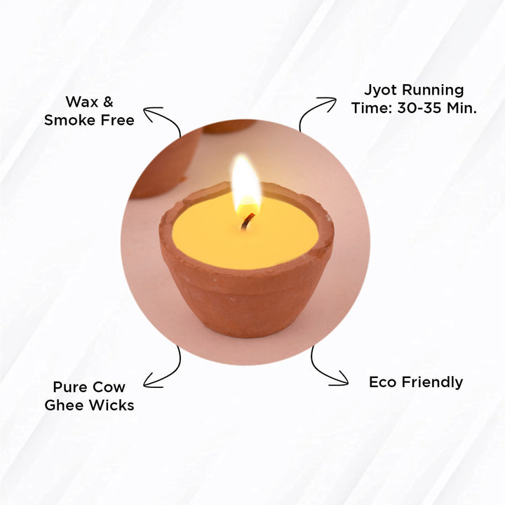 About Product: Cow Ghee Wicks with Handmade Earthen Clay Diya a set of 10 Special Diwali Diya will add more beauty to your home decor and festivities.