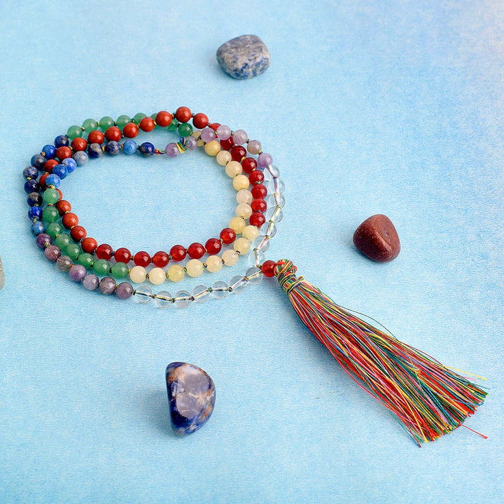 7 Chakra Round Beads Necklace for Chakra Healing 6 MM | Buy Now – Satvikworld.com