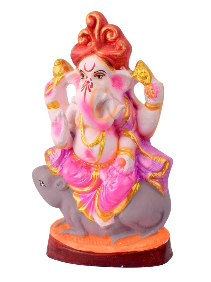 Eco Friendly Ganesha statues are made of 100% biodegradable and eco-friendly material by using Shadu Mati Clay Mitti, which dissolves easily in water. The colours used are also natural, and they decompose and dissolve in water easily. Although they have been made all across India, West Bengal and Maharashtra often employ skilled artisans to make them.