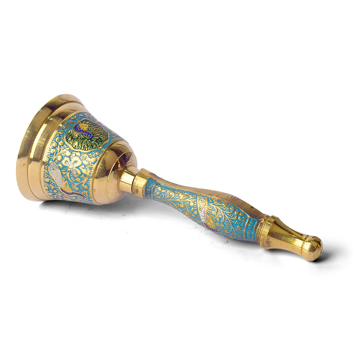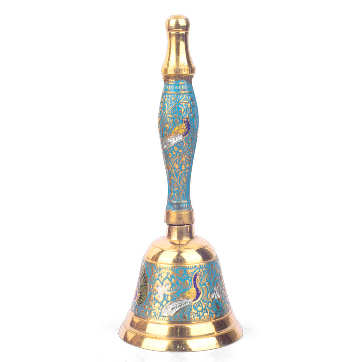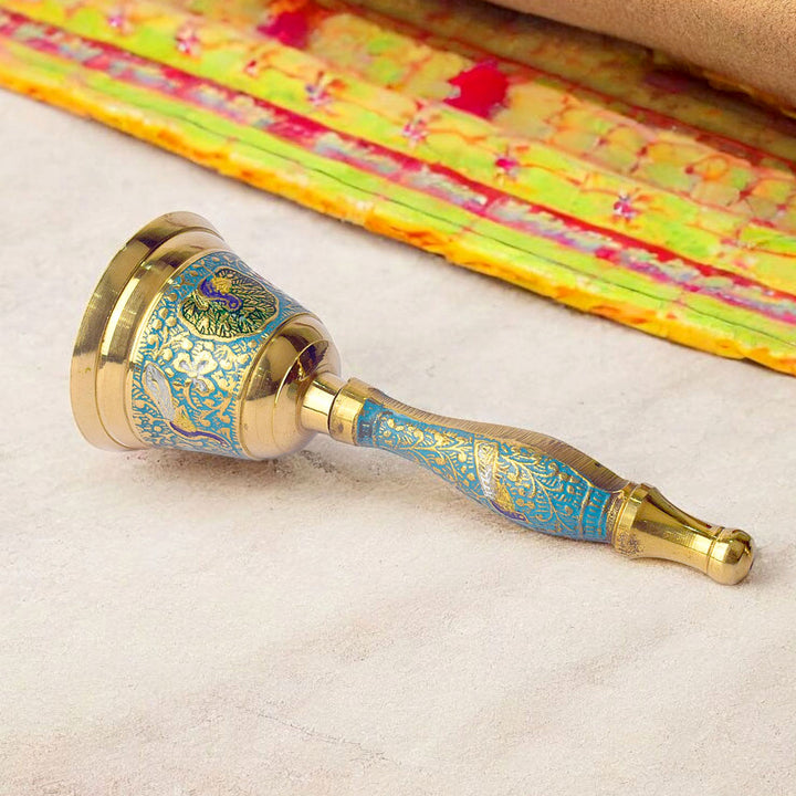 7 Inch Handcrafted Meenakari Brass Puja Bell (SkyBlue)
