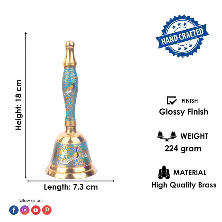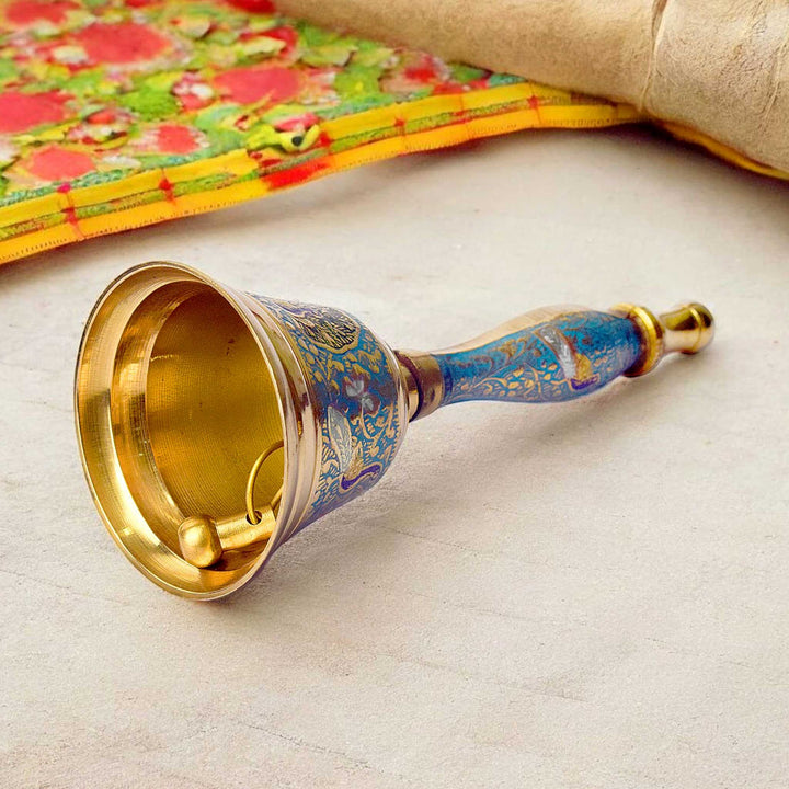 Handcrafted Puja Bell | Meenakari Brass Bell | Sky Blue Puja Ghanti | Brass Pooja Bell 7 Inch | Designer Ghanti for Mandir | Meenakari Temple Bell | Indian Prayer Bell | Brass Ghanti for Aarti | Handcrafted Temple Bell | Decorative Puja Bell | Sky Blue Brass Ghanti | Traditional Brass Bell | Meenakari Work Bell | Mandir Bell Brass | Satvik Puja Bell