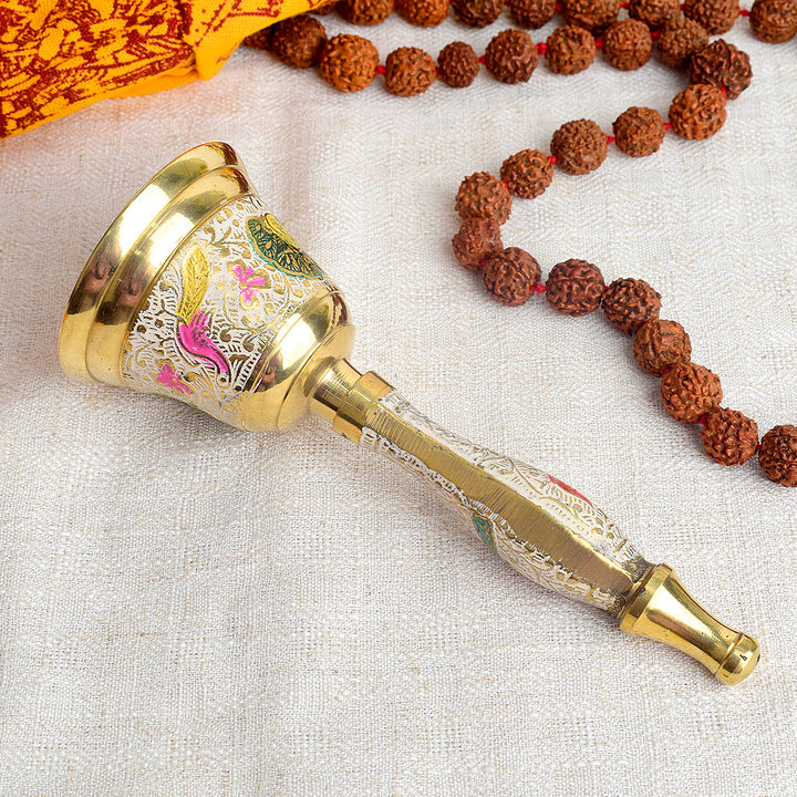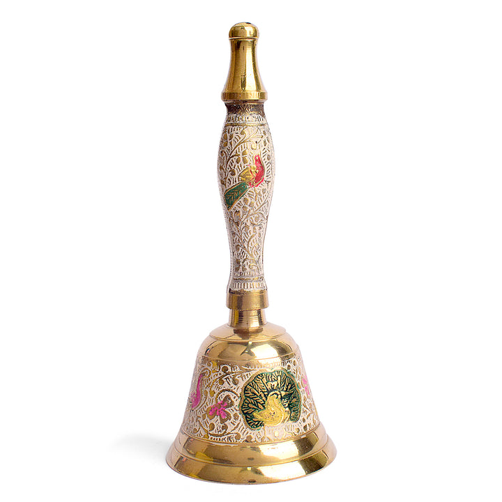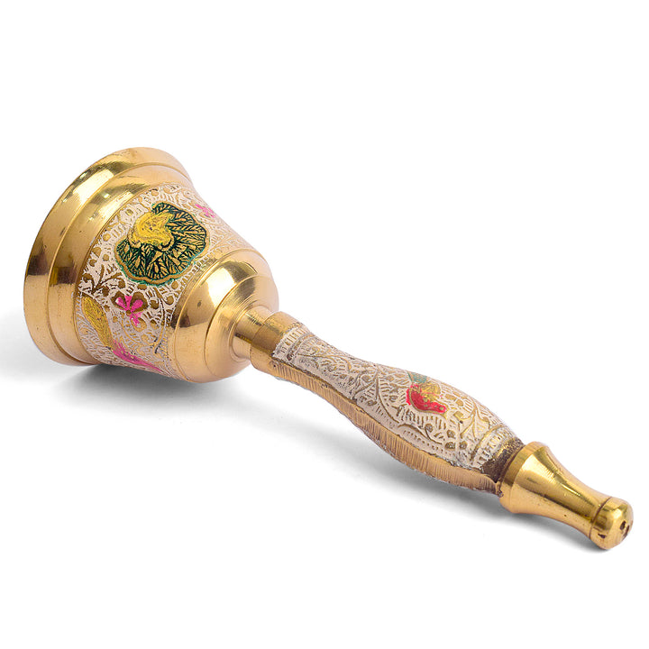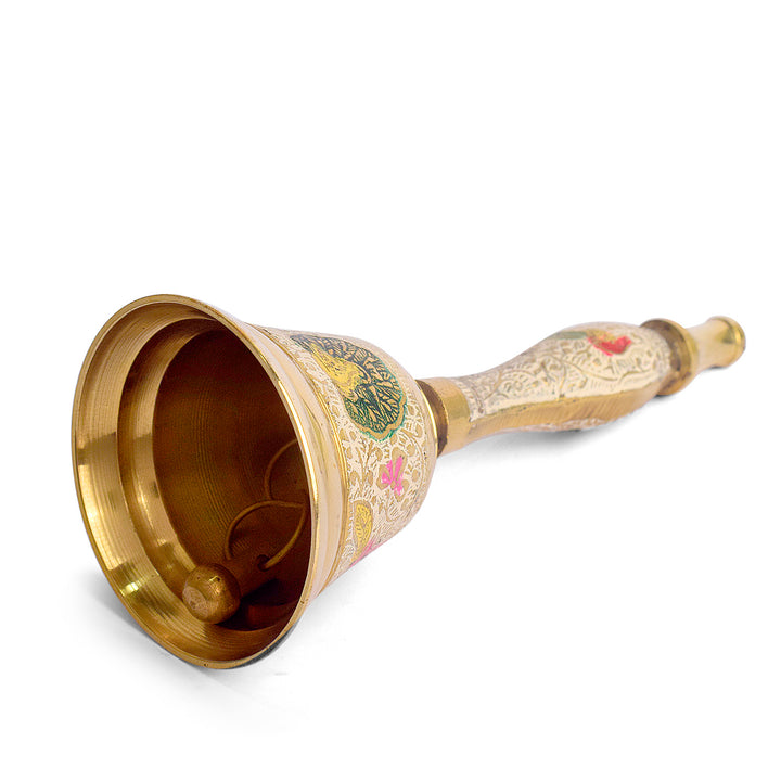 Handcrafted Puja Bell | Meenakari Brass Bell | White Puja Ghanti | Brass Pooja Bell 7 Inch | Designer Ghanti for Mandir | Meenakari Temple Bell | Indian Prayer Bell | Brass Ghanti for Aarti | Handcrafted Temple Bell | Decorative Puja Bell | White Brass Ghanti | Traditional Brass Bell | Meenakari Work Bell | Mandir Bell Brass | Satvik Puja Bell