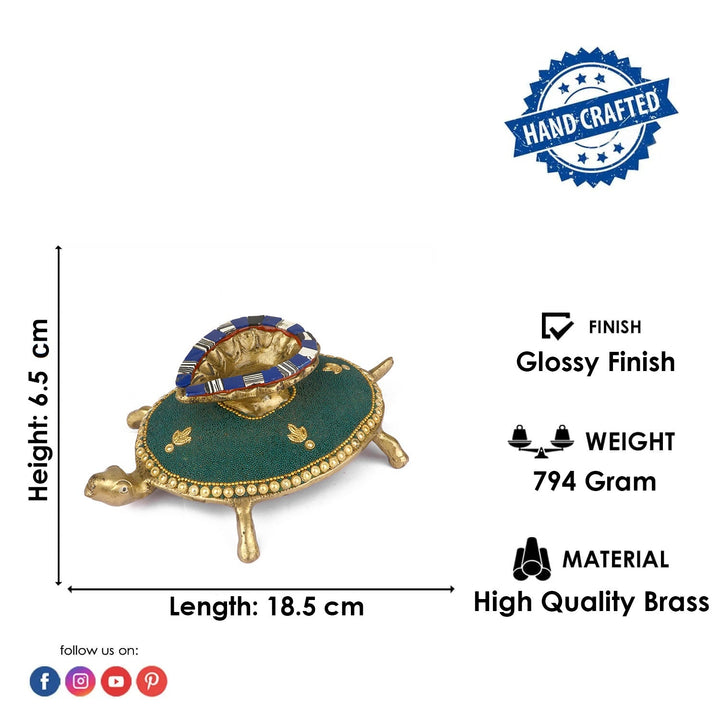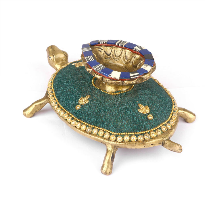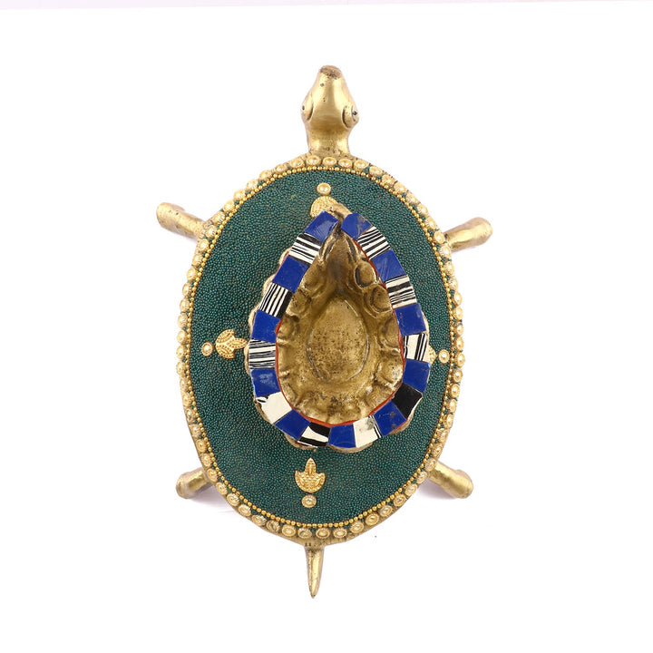 • Item Name: Beautifully Engraved Brass Turtle with In Built Diya on Top