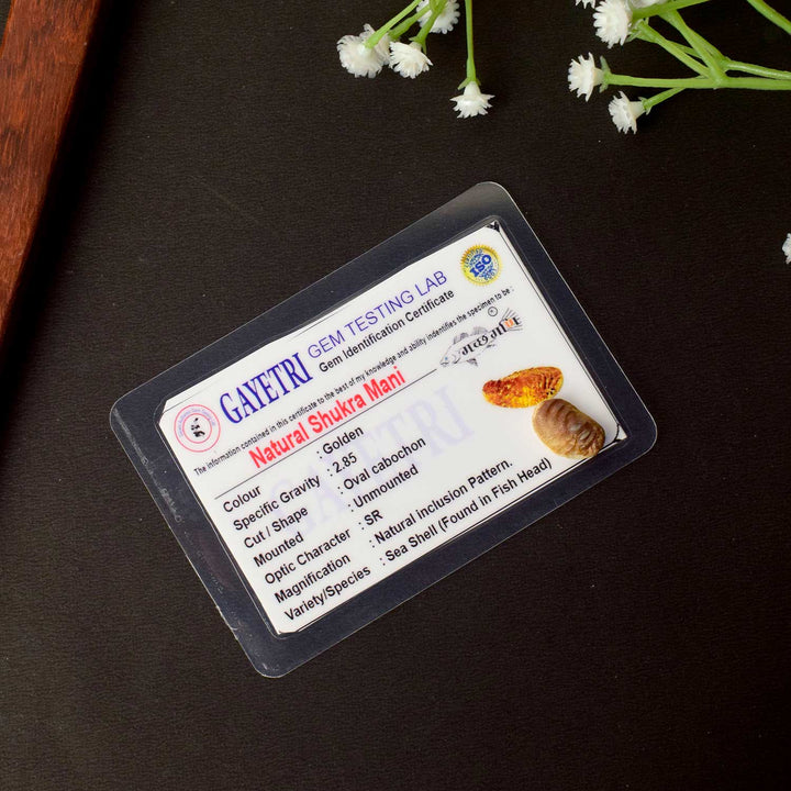Certified Natural Shukra Mani (Machh Mani) in Golden Finish for Venus Blessings