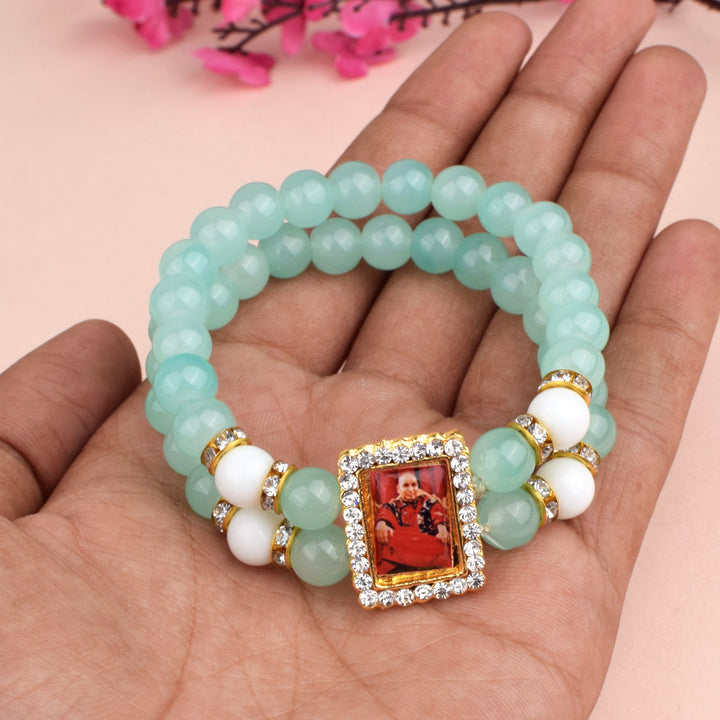 • Item Name: Cyan Green Beaded Beaded Guru Ji Maharaj Handmade Bracelets for Men and Women